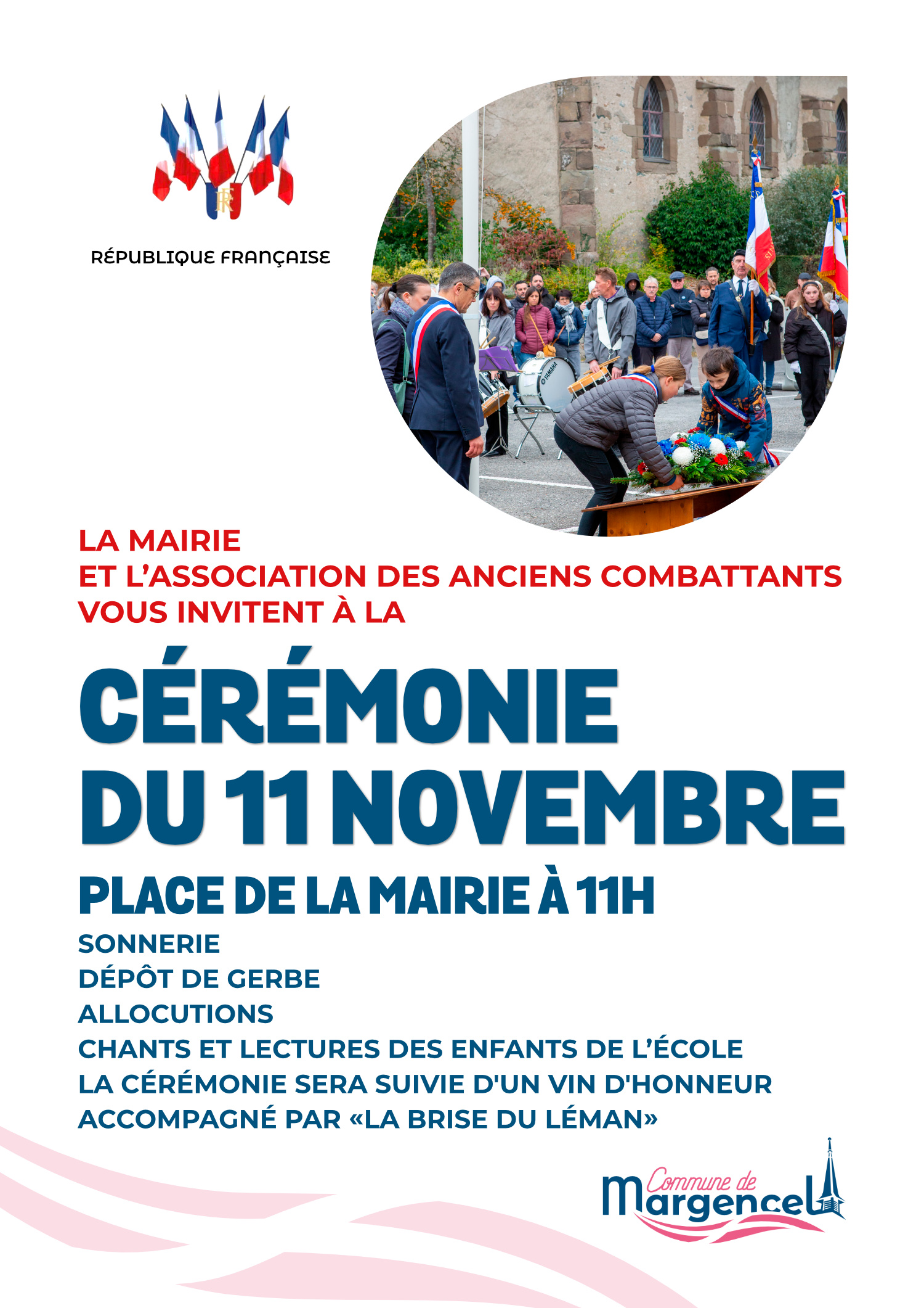 La mairie et l’association des anciens combattants vous invitent à la cérémonie du 11 novembre, place de la mairie à 11h