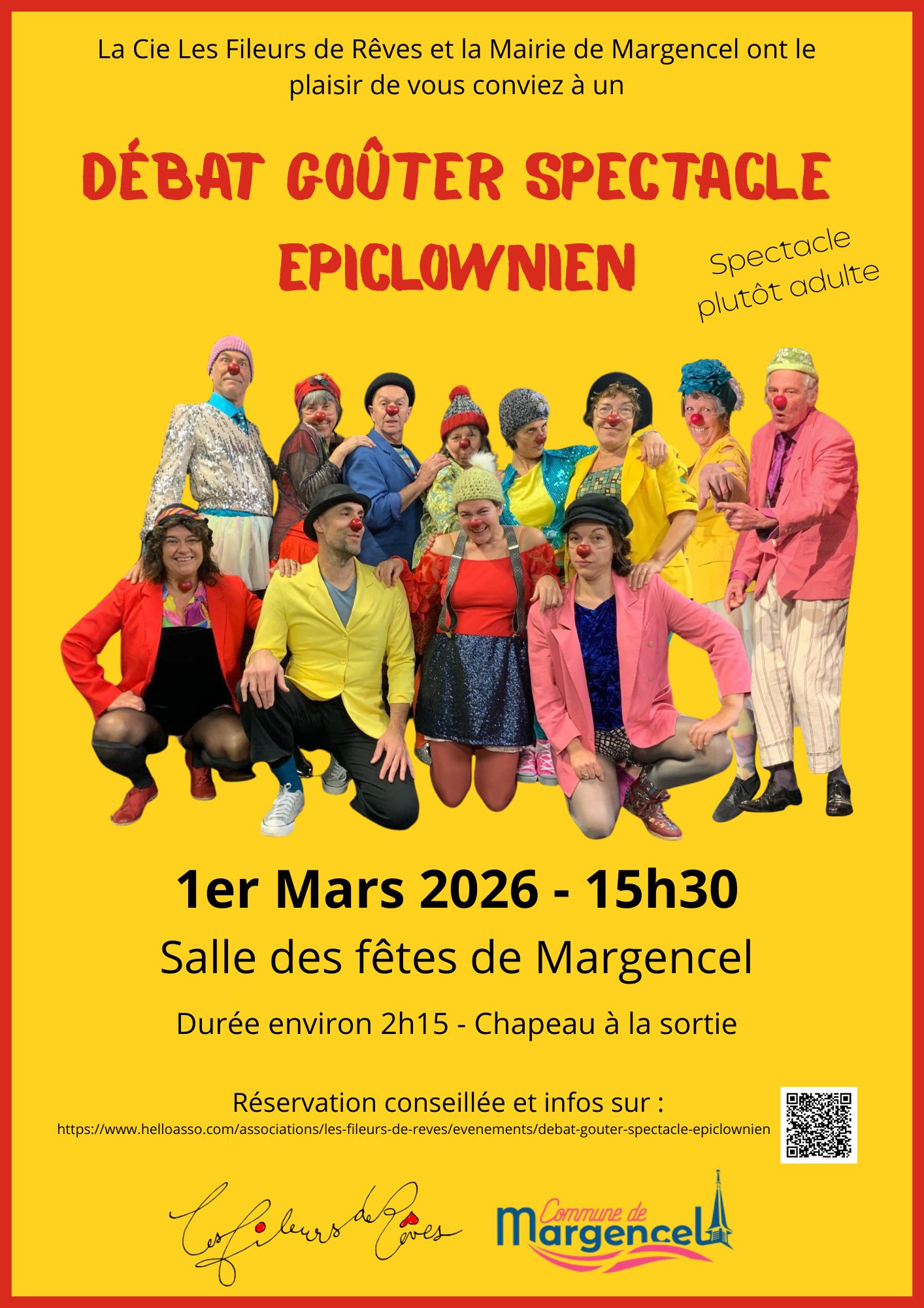La Cie Les Fileurs de Rêves et la Mairie de Margencel ont le plaisir de vous conviez à un DÉBAT GOÛTER SPECTACLE EPICLOWNIEN,