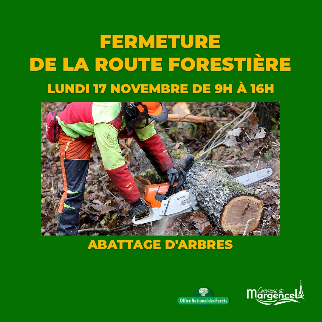 Lundi 17 novembre de 9h à 16h pour permettre l’intervention de l’ONF et des services techniques de la commune pour l’abattage d’arbres, la route forestière sera fermée à toute circulation de l’impasse des Primbois à La sortie d’agglomération vers Perrignier.