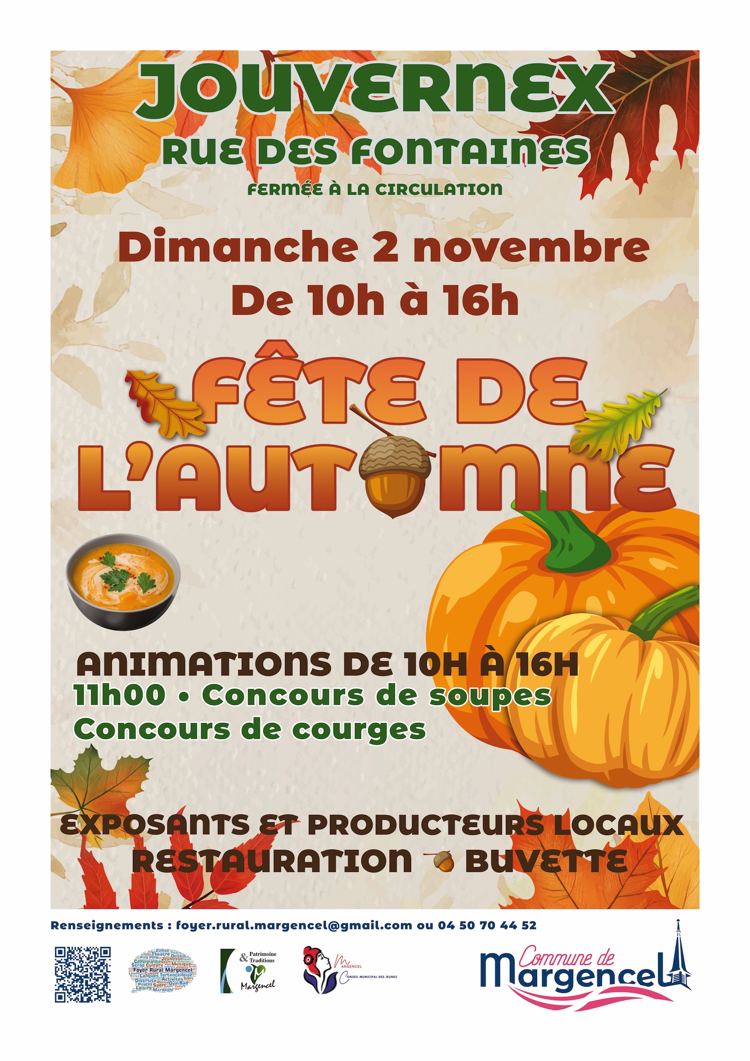 Pour la deuxième édition, le Foyer rural et l’association Patrimoine et Traditions en collaboration avec la commission fêtes et cérémonies et le CMJ invitent les habitants de Margencel à célébrer la Fête de l’Automne, rue des fontaine à Jouvernex.